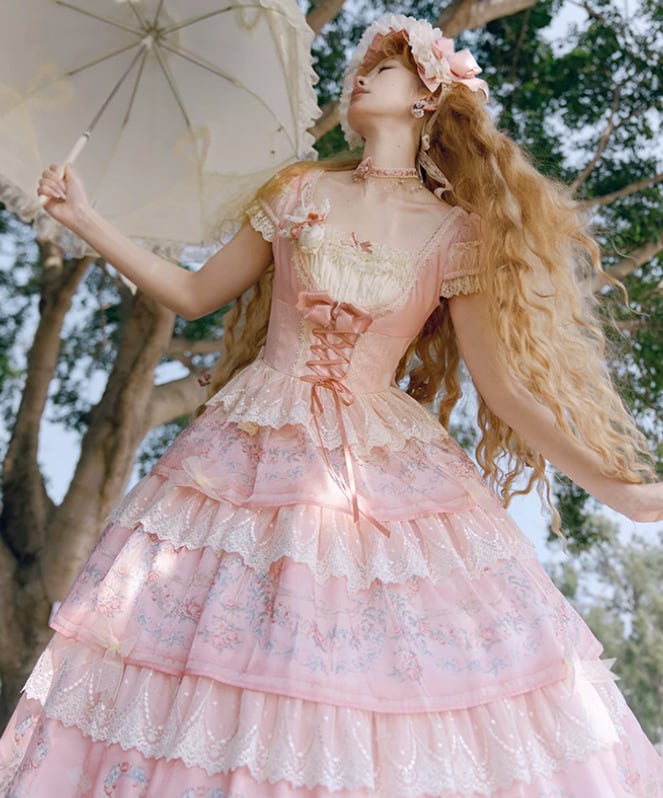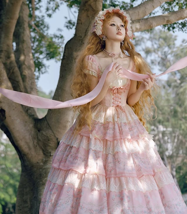 柔らかなティアードデザインと上質なレースが特徴の、
