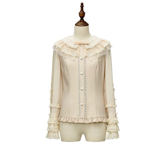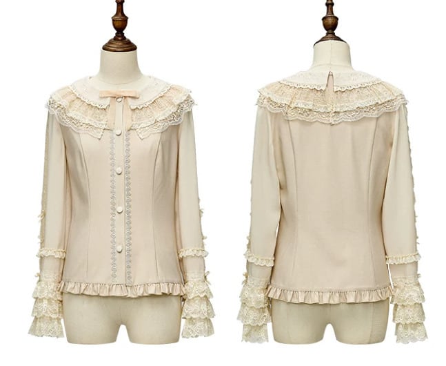 甘ロリ ブラウス のみ ティアード 長袖 ティアードスリーブ レース お嬢様 かわいい フレンチクラシカル 上品 ガーリー エレガント レディース お茶会 デート