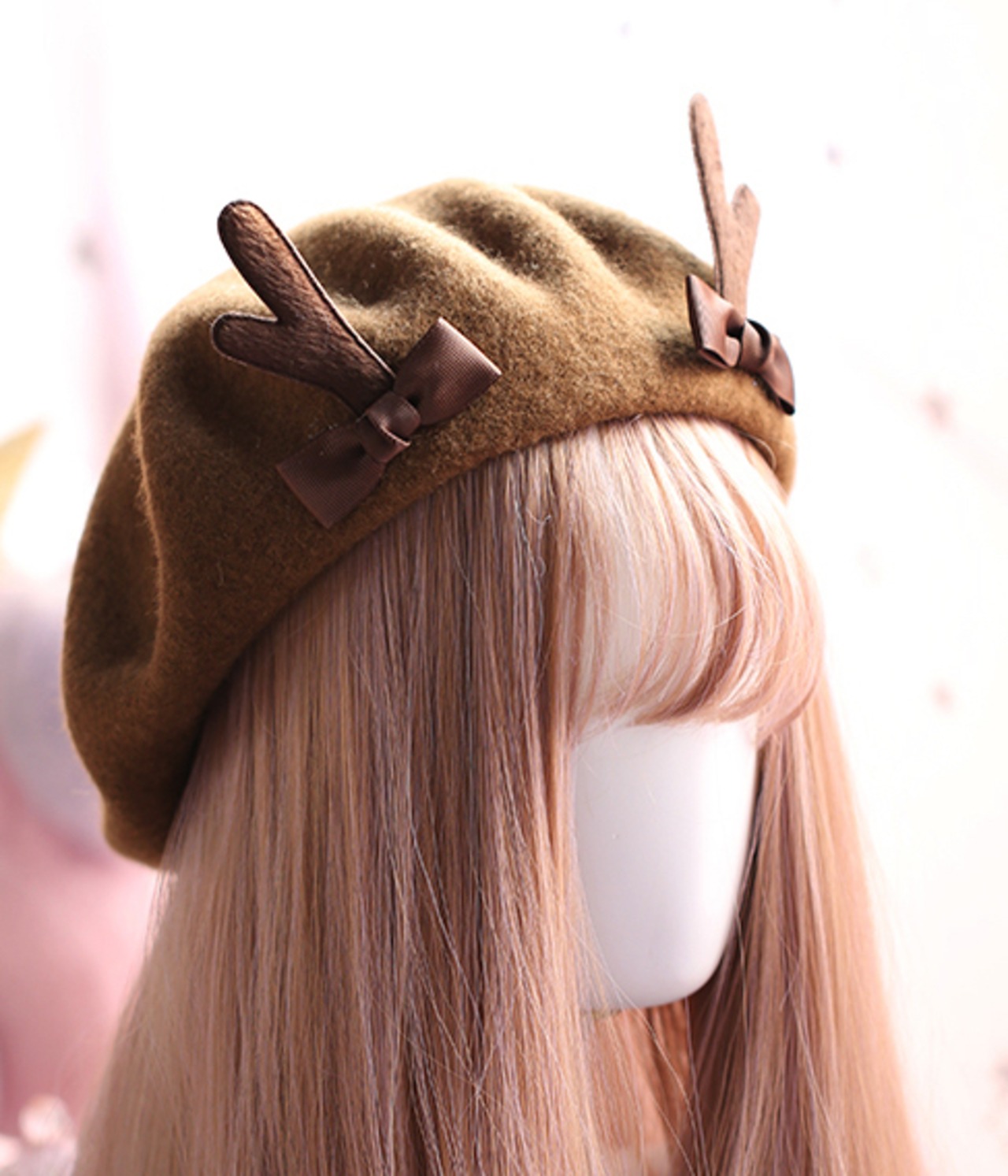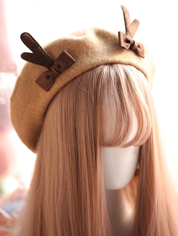 一部即納 ロリータ シカのツノ付きベレー帽 ベレー帽のみ 甘ロリ リボン 甘ロリ かわいい loli0584