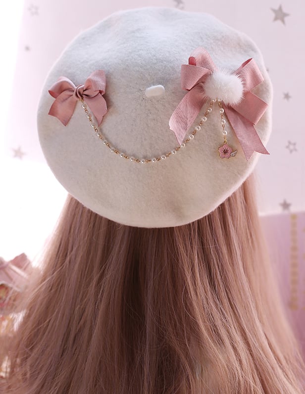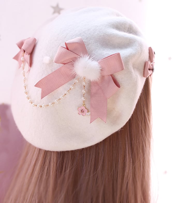 ロリータ リボンたくさんパールベレー帽 ベレー帽のみ 甘ロリ リボン 甘ロリ かわいい loli0586