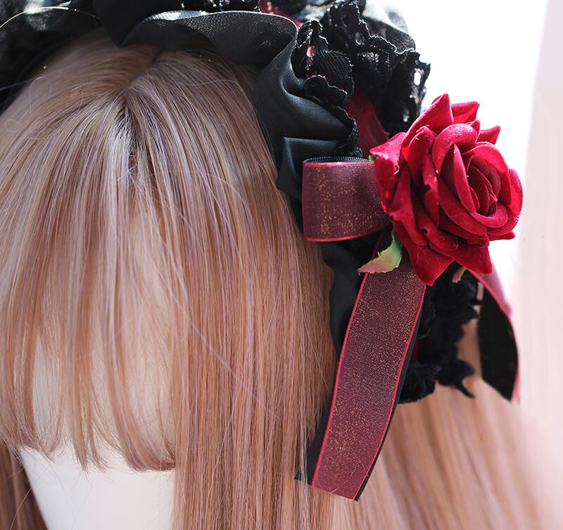 ロリータ/ゴスロリ/白ロリ/甘ロリ/黒ロリ/ゴシック/姫ロリ/クラロリ/あったか/お姫様/パーティ/かわいい/リボン/ブラック/カチューシャ/KC/フリル/X'mas/お嬢様/小物/ヘッドドレス/ヘアアクセ/レース/ローズ/クラシカル