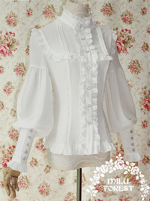 ロリータ Milu Forest ティアードカラー長袖ブラウス ブラウスのみ フリル リボン 白ロリ 黒ロリ ゴス loli0630