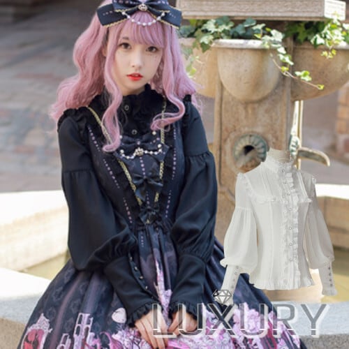 ロリータ/ゴスロリ/白ロリ/甘ロリ/黒ロリ/ゴシック/姫ロリ/クラロリ/お姫様/レース/かわいい/宮廷/クラシカル/リボン/お嬢様/姫袖/ブラウス/ドレッシー/長袖/フリル/リボン/クラシック/魔法/貴族/ティアードカラー