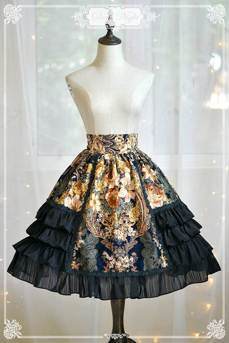 ロリータファッション ロリィタ ヨーロッパ風スカート ハイウエスト フリル 花柄 ゴスロリ S M L XL cnalb20444
