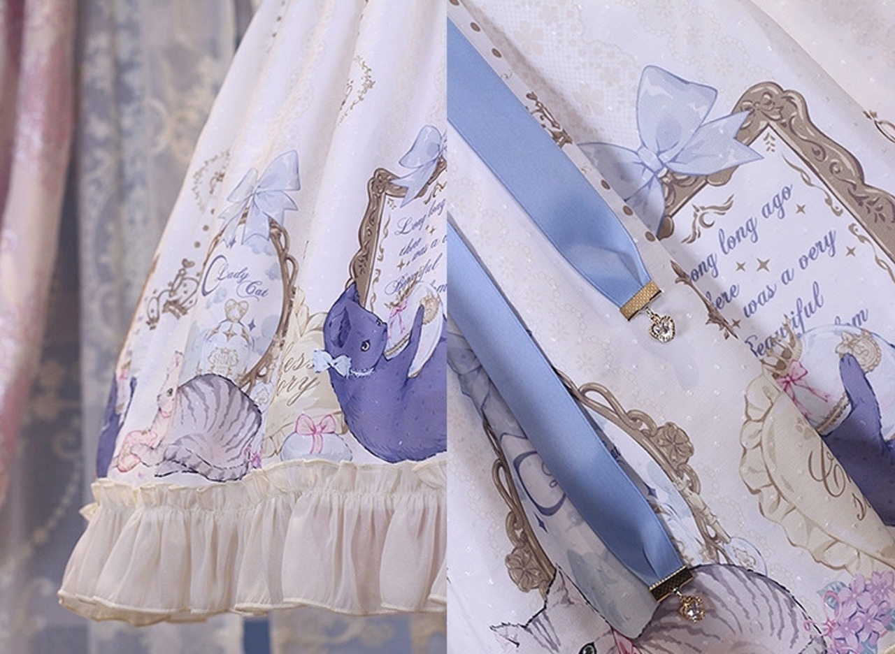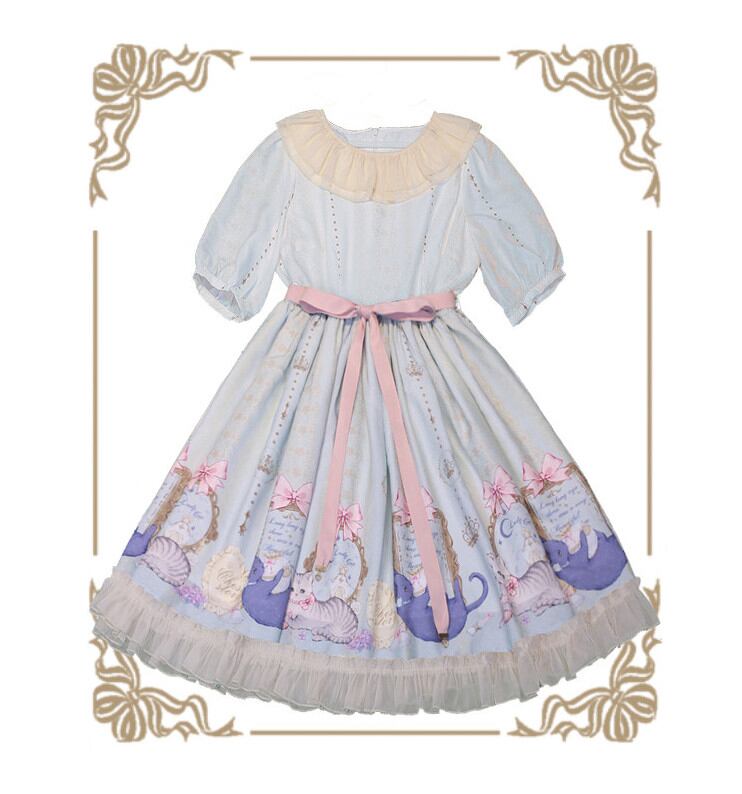 ロリータChess Story MissCatワンピース 半袖 フリルカラー リボン レース 甘ロリ 猫柄 loli0058