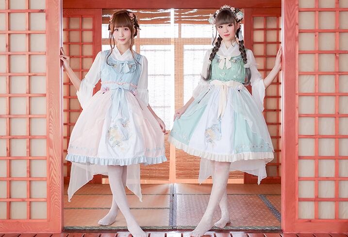 ロリータ Chess Story 華ロリパステルカラージャンスカ jsk 宮廷風 リボン フリル Qiloli loli0068