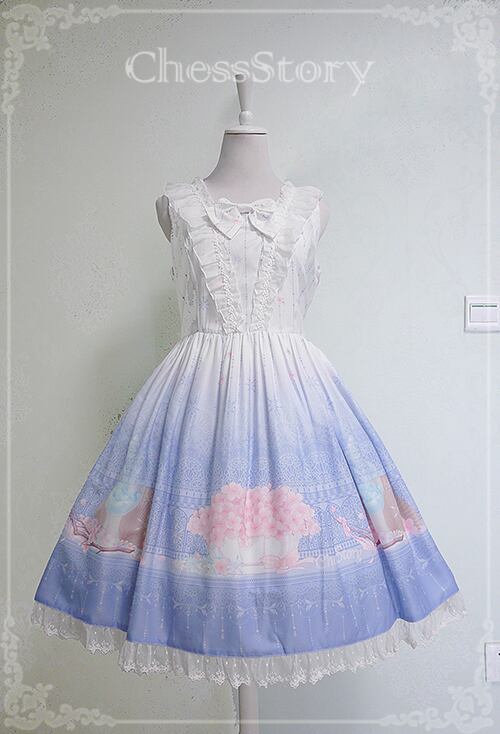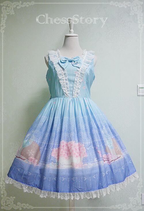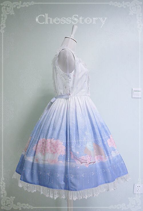 ロリータ Chess Story フラワー柄ジャンパースカートⅠ Peachblossom And Snow系 バックVレース jsk ジャンスカ 甘ロリ loli0074