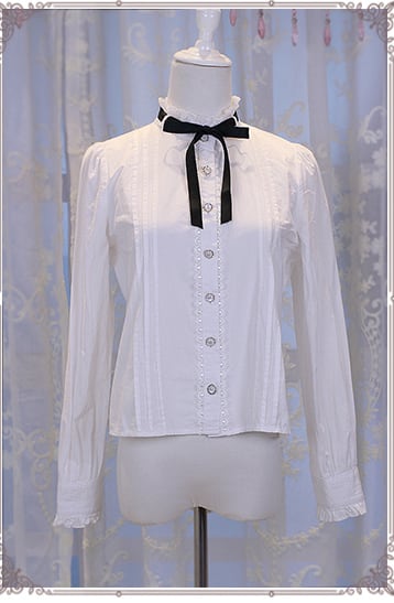 ロリータ Chess Story 制服風ブラウス リボン フリル 甘ロリ ゴスロリ タック ホワイト 長袖 loli0078