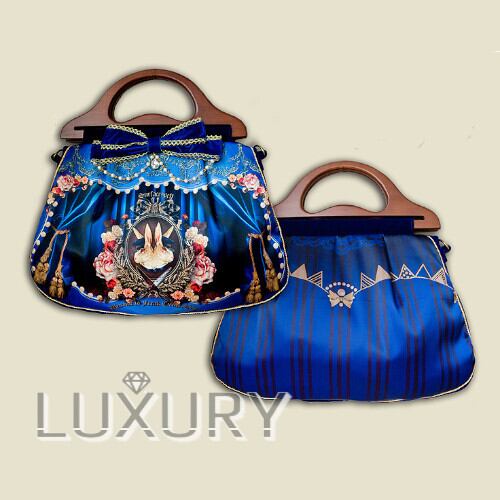 ロリータ/ハンドバッグ/ウサギ/ストライプ/ネイビー/パール/薔薇/バラ/木製/甘ロリ/クラシカル/クラシック/かわいい/フリル