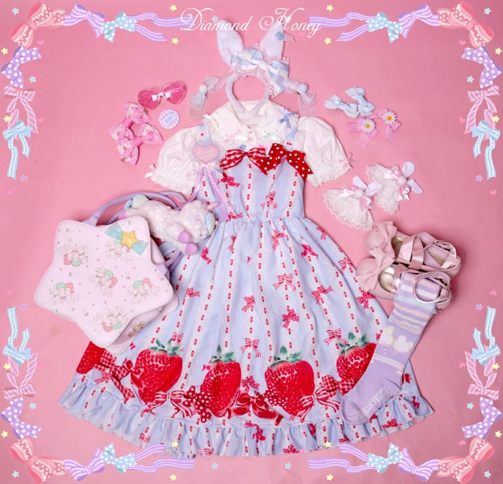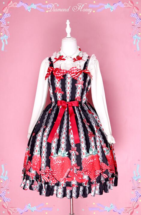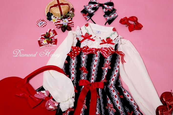レースが無いデザインですので、いちごのデザインを邪魔せず、ブラウスやニーハイソックスで可愛さをプラスしてくださいね☆