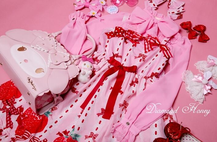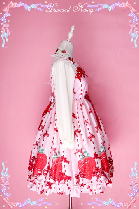 【受注生産】 ロリータ Diamond Honey リボン イチゴ ジャンパースカート ジャンスカのみ 甘ロリ リボン レディース ロリータファッション ロリィタ ひざ丈 ピンク loli0230