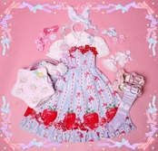 ロリータ/ジャンパースカート/いちご/ピンク/膝丈/春/キュート/イチゴ/甘ロリ/ジャンスカ/jsk/ドレス/ロリータドレス/かわいい/リボン