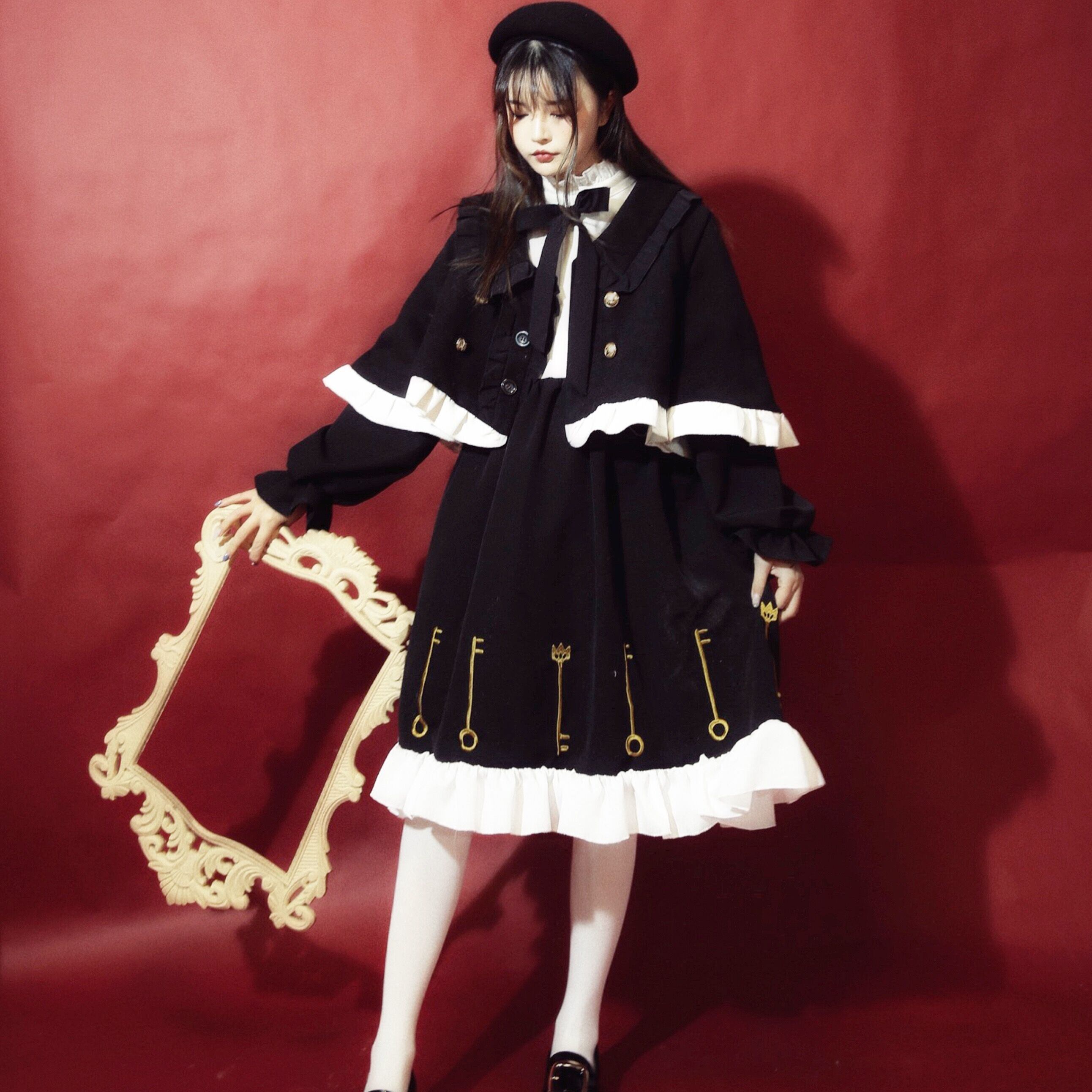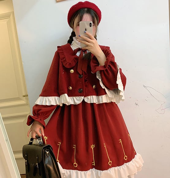 ロリータ/ロリィタ/甘ロリ/お嬢様/クラロリ/制服ロリータ/アウター/マント/セットアップ/制服風/リボン/フリル/鍵/key/秋冬