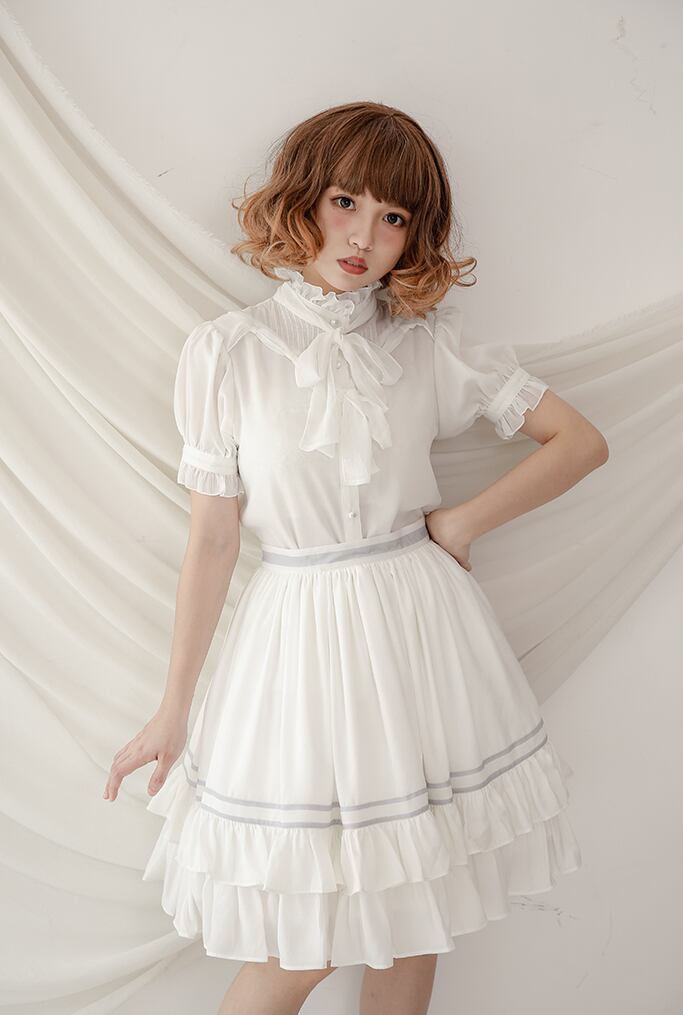ハイネックシフォンブラウス 半袖 フリル レディース ロリータ 甘ロリ ゴスロリ 薄手 ブラウス ハイネック 春夏 パフスリーブ loli1109