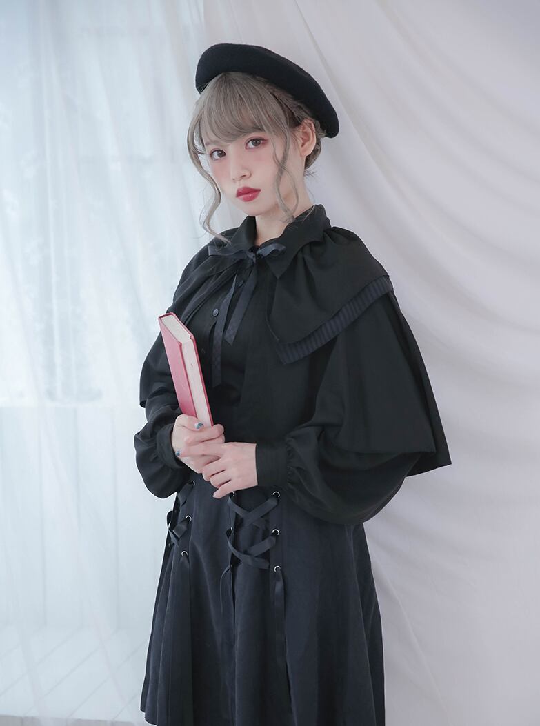 ロリータ/ロリィタ/レディースファッション/レディース/カジュアルロリータ/ブラウス/シャツ/甘ロリ/クラロリ/メイド/ゴスロリ/王子系/男装/リボン付き/マント付き/ケープ/長袖/ティアードカラー/フリル