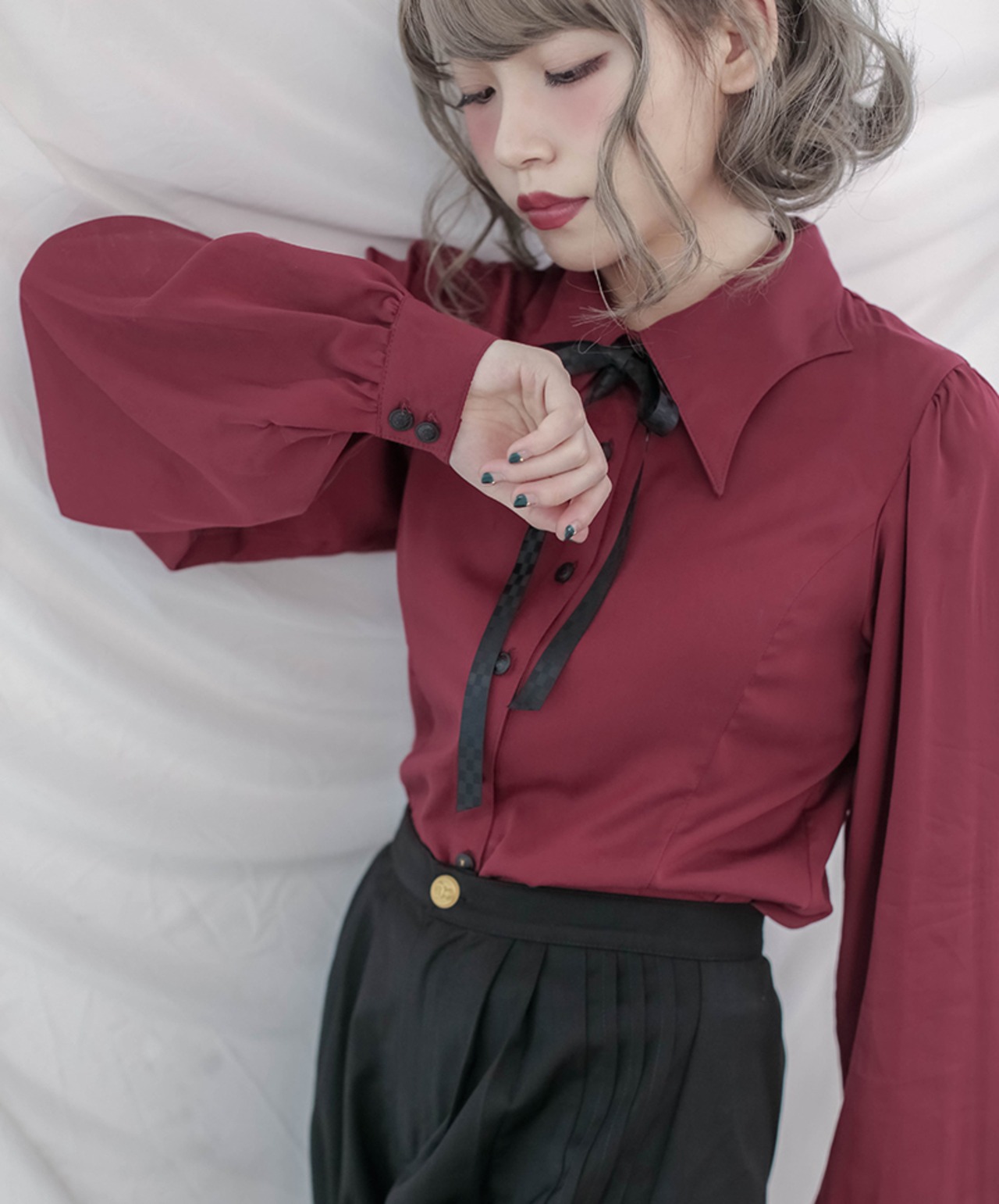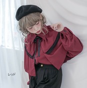 マント風リボンブラウス ブラウスのみ リボン付き レディース ロリータ 長袖 変形ブラウス 名探偵 シャツ 甘ロリ ゴスロリ loli1119