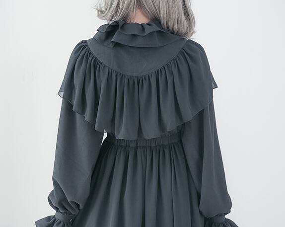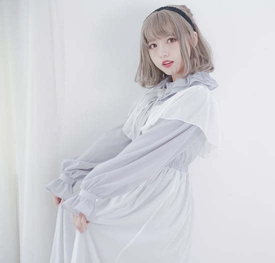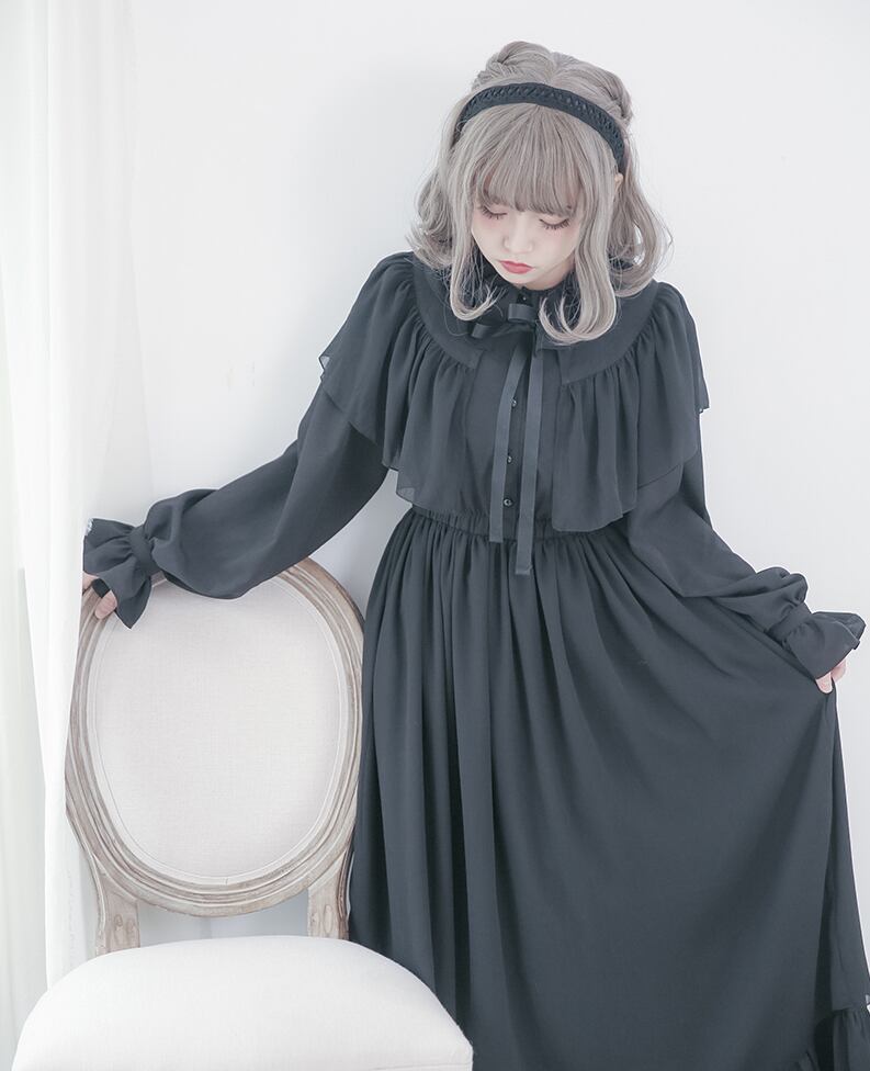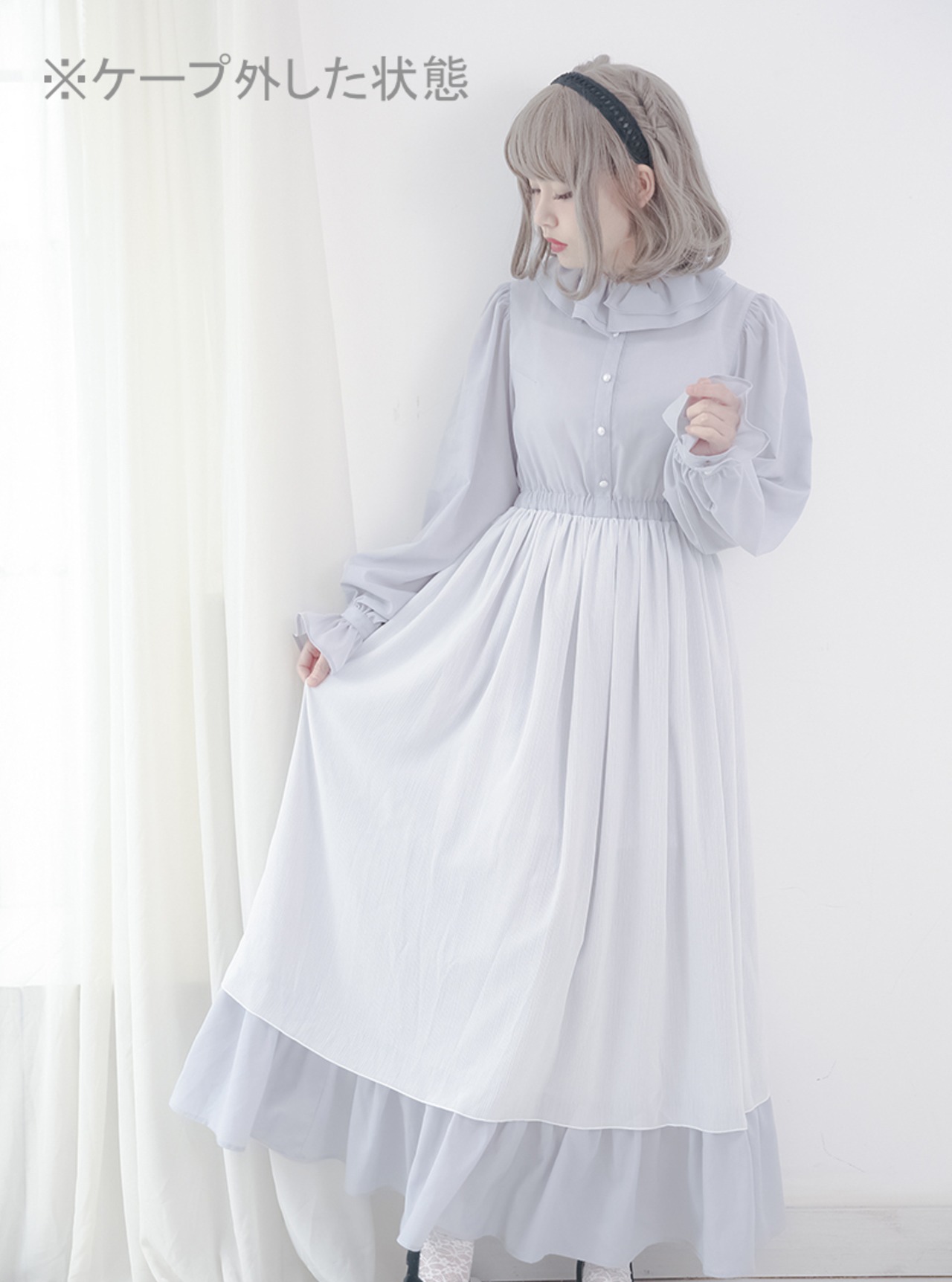 ロリータ/ロリィタ/レディースファッション/レディース/カジュアルロリータ/ワンピース/ワンピ/オP/甘ロリ/クラロリ/メイド/ゴスロリ//リボン付き/マント/ケープ/長袖/ティアードカラー/フリル/ロング丈/やわらか