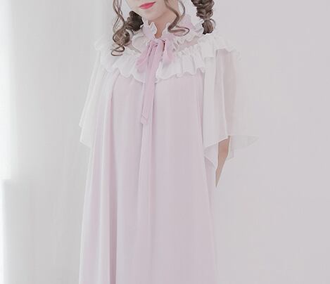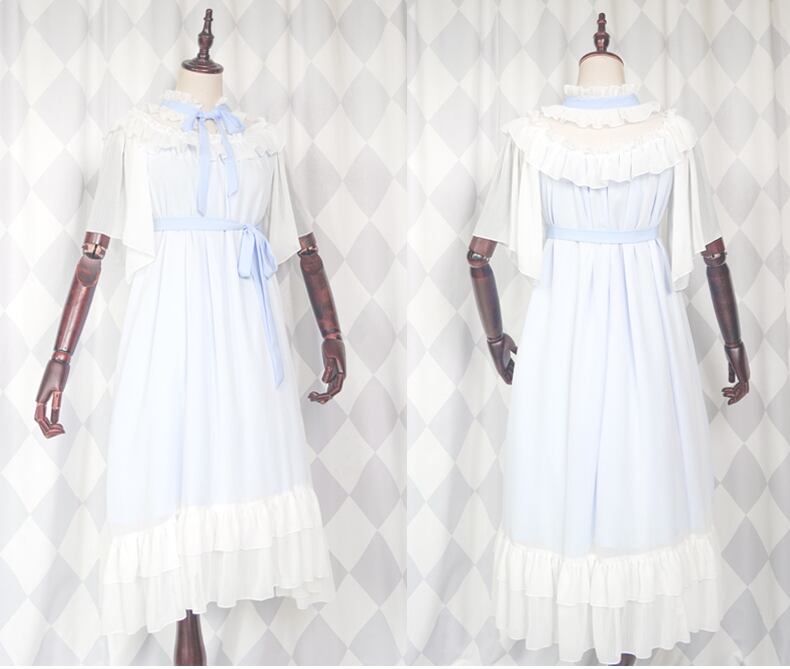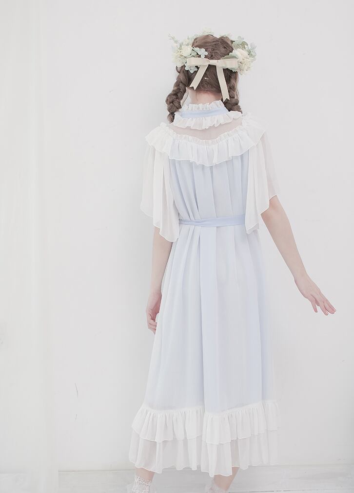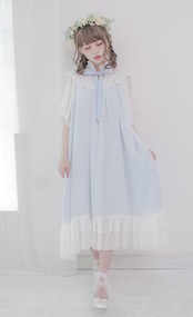 ロリータ/ロリィタ/レディースファッション/レディース/カジュアルロリータ/ワンピース/ワンピ/OP/甘ロリ/クラロリ/リボン付き/半袖/マカロンカラー/パステルカラー/ジェラートカラー/春夏/シースルー/透け/涼しい/ティアードカラー/フリル/膝丈