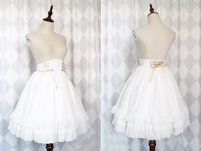 ロリータ/ロリィタ/レディースファッション/レディース/カジュアルロリータ/スカート/膝丈/フリル/チュール/ギャザー/甘ロリ/スカート/クラロリ/モノトーン/春夏/シースルー/透け/涼しい/白ロリ/ストライプ/ハイウエスト/レースアップ/編み上げ