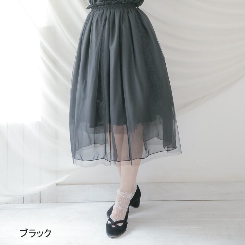 JERRY FISH シースルースカート スカートのみ ひざ下丈 透け感 レディース ロリータ 甘ロリ リボン 柔らか チュール loli1145