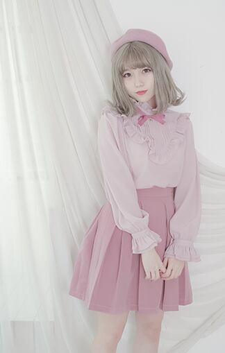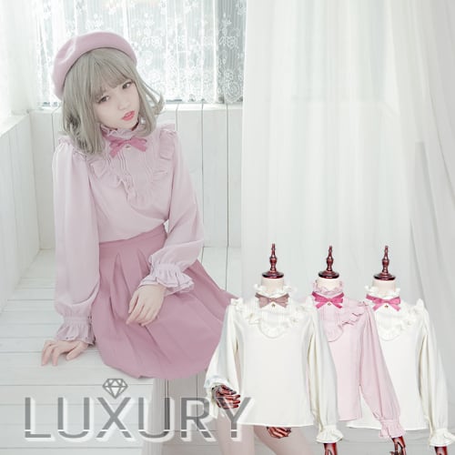 ロリータ/ロリィタ/レディースファッション/レディース/カジュアルロリータ/ブラウス/ちょうちん袖/パフスリーブ/バルーン袖/フリル/甘ロリ/メイド/リボン/長袖/ストロベリーカラー/春夏