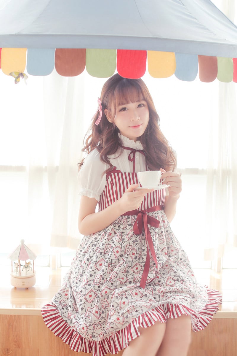 ロリータ/ロリィタ/レディースファッション/レディース/カジュアルロリータ/ワンピース/ワンピ/OP/ジャンパースカート/ジャンスカ/jsk/トランプ柄/ストライプ/キャミソールワンピ/キャミソール