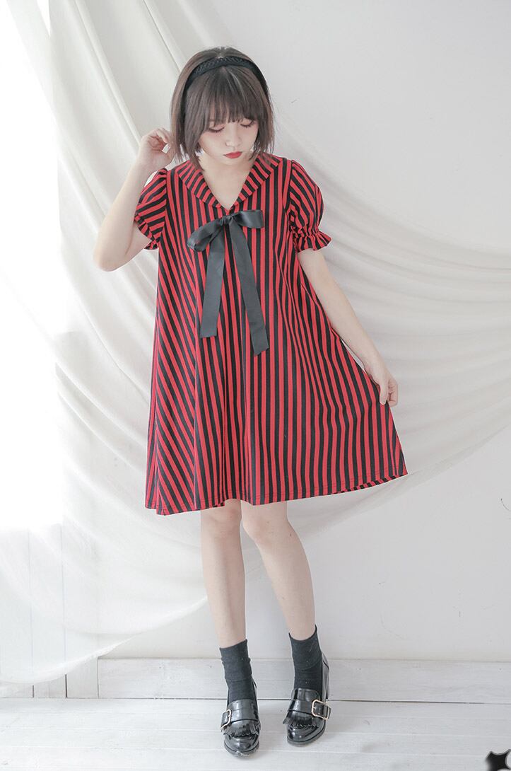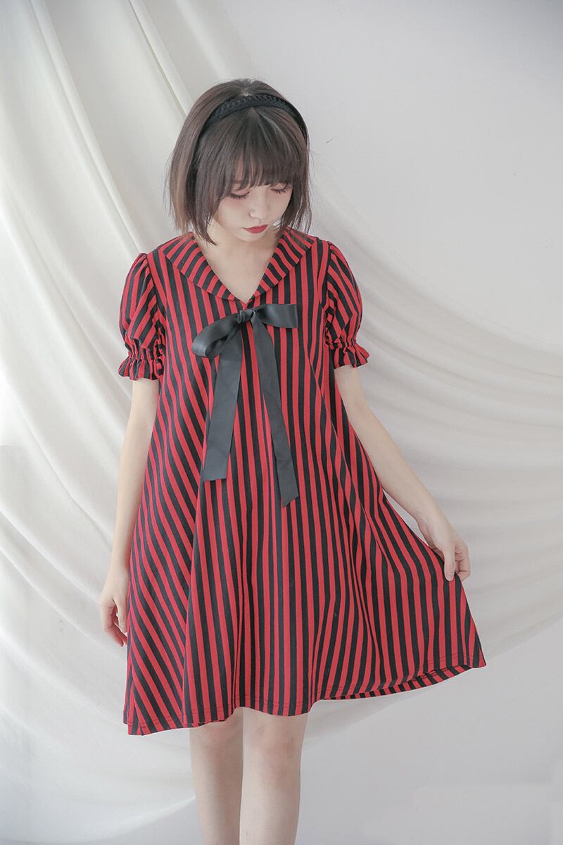 ロリータ/ロリィタ/レディースファッション/レディース/カジュアルロリータ/ワンピース/ワンピ/OP/甘ロリ/セーラーロリータ/セーラー服/セーラーカラー/水兵さん/マリンルック/半袖/ストライプ/膝上/膝丈/リボン