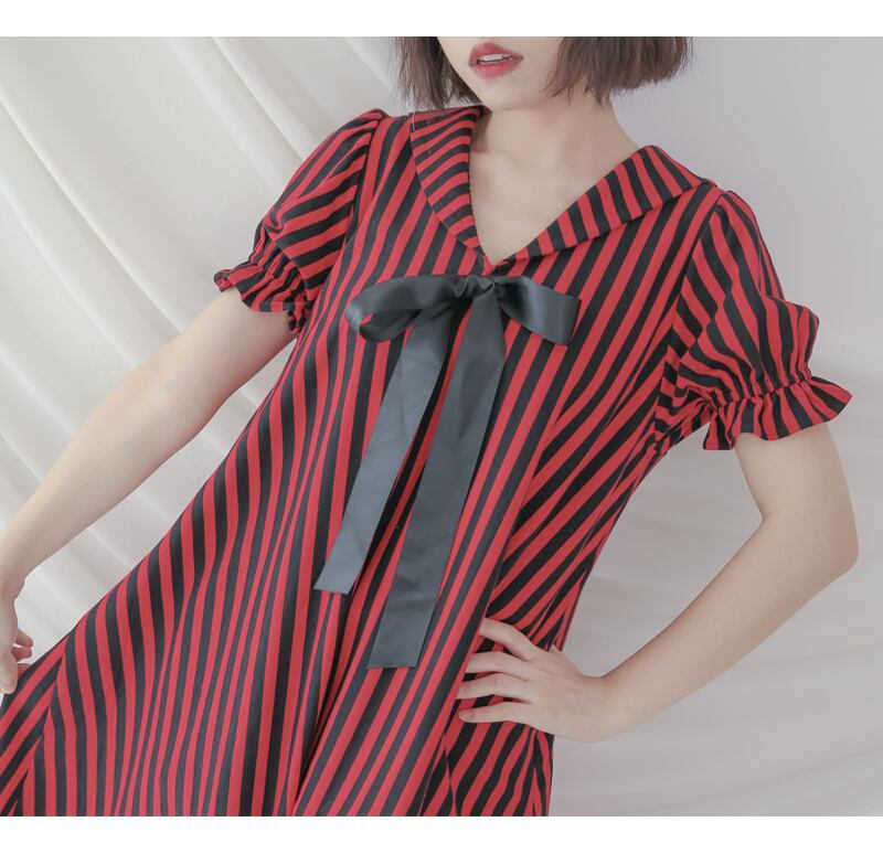 ロリータワンピース ロリータドレス ロリータファッション ゴシックロリータ lolita ストライプ セーラーワンピース ワンピのみ セーラー服 制服風 レディース スモック ロリータ 甘ロリ カジュアル 半袖 loli1174