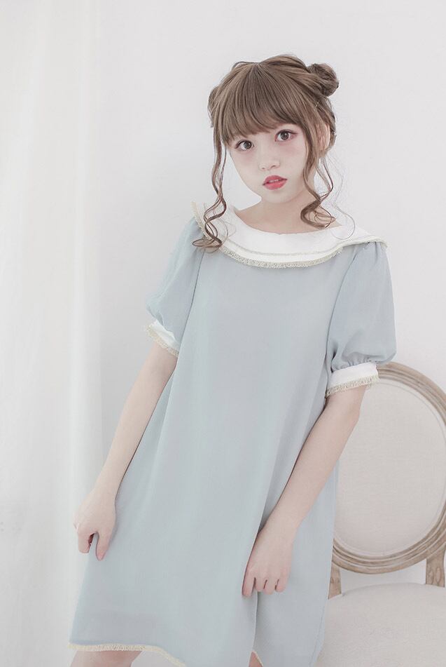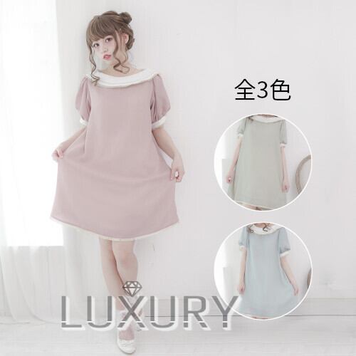 ロリータ/ロリィタ/レディースファッション/レディース/カジュアルロリータ/ワンピース/ワンピ/OP/甘ロリ/ラウンドネック/リボン/マカロンカラー/パステルカラー/ちょうちん袖/パフスリーブ/半袖