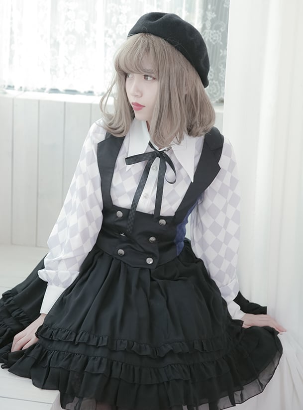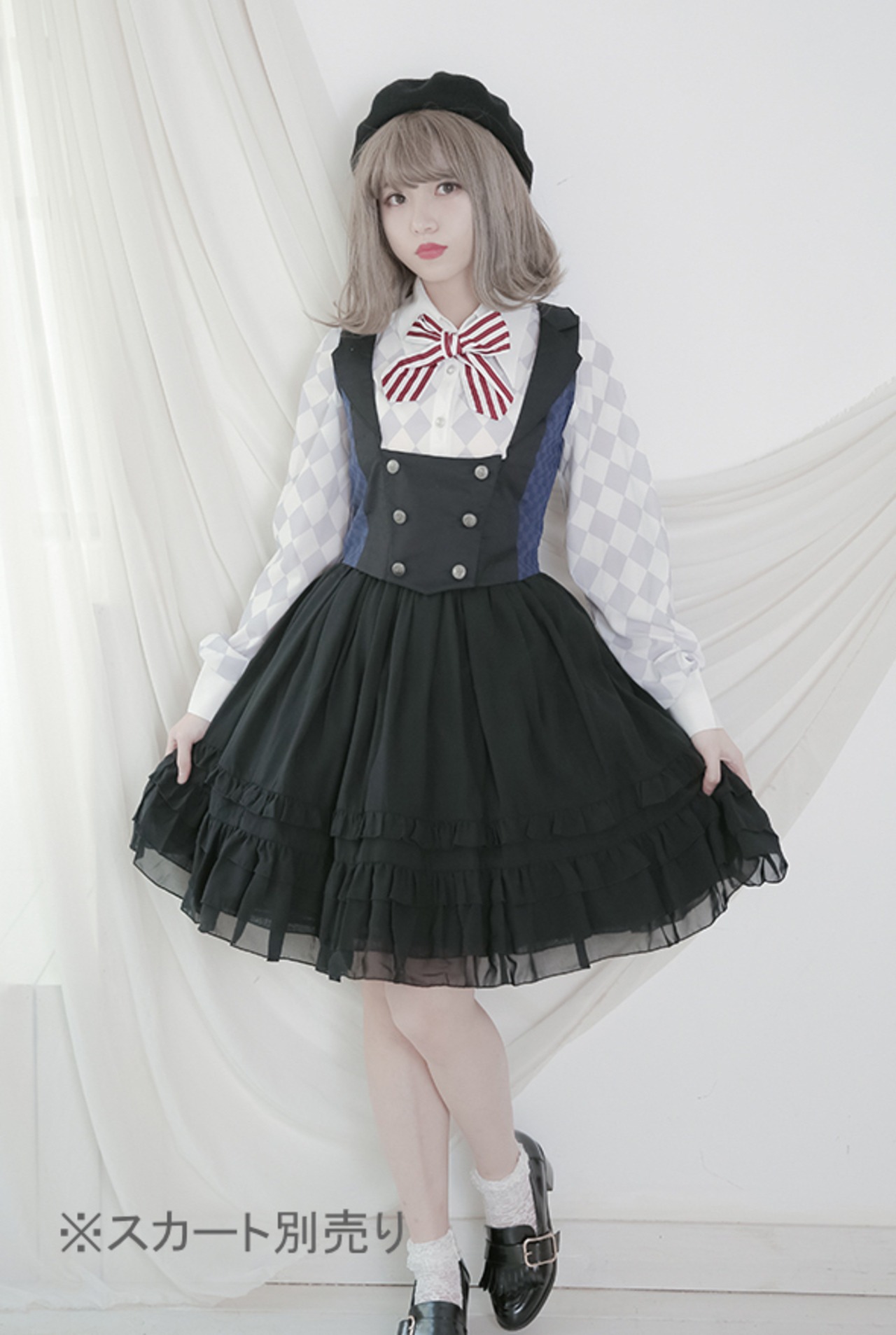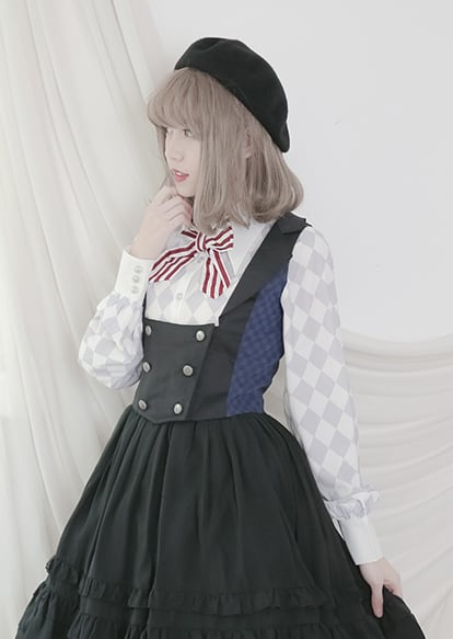 ロリータ/ロリィタ/レディースファッション/レディース/カジュアルロリータ/ベスト/ボタン付き/制服風/チェスボード柄/チェック柄/クラシカル/メイド/コスプレ/ゴスロリ/クラロリ/制服ロリータ