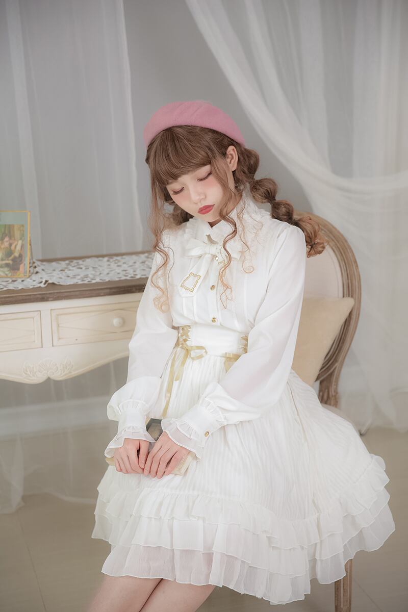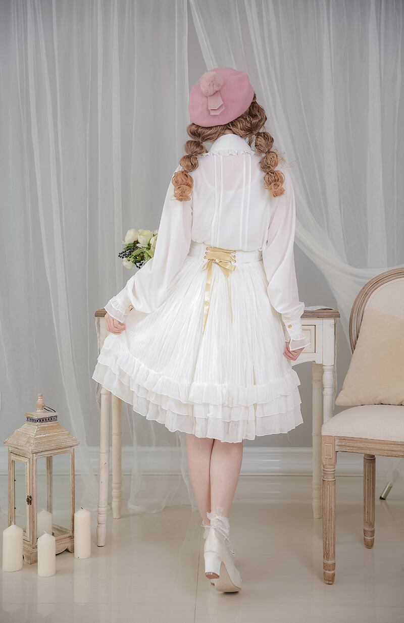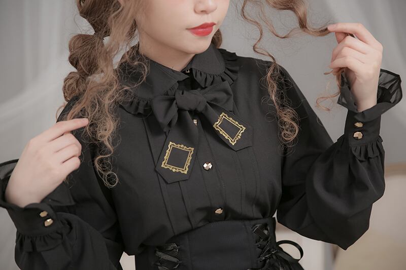 ロリータファッション/ロリータ/レディース/トップス/ブラウス/長袖/春夏/フリル/リボンタイ/クラシカル/クラロリ/ゴスロリ/お嬢様/白ロリ/透け感