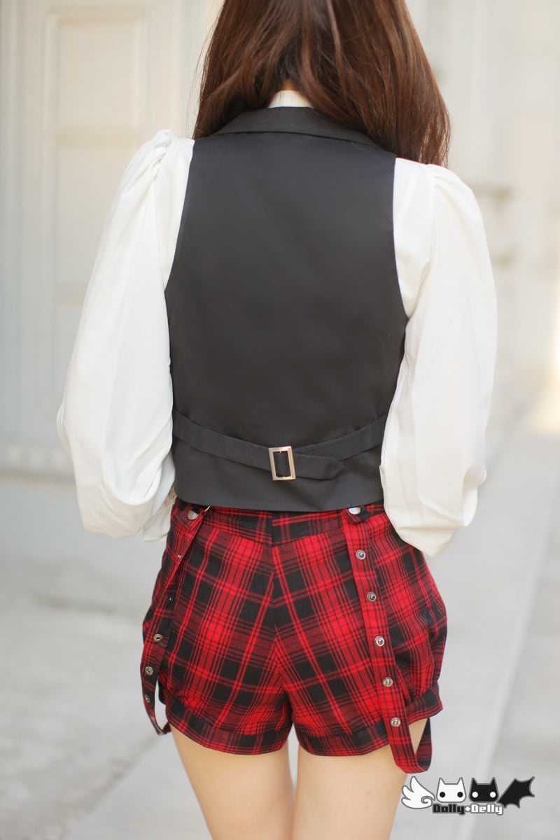 ロリータファッション/ロリータ/レディース/ベスト/チェック柄/学生風/アクセント/重ね着/クラシカル/メイド/男装/王子系/原宿系/トップス/kawaii/かわいい