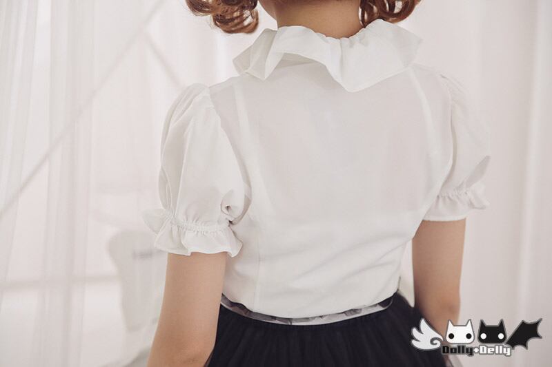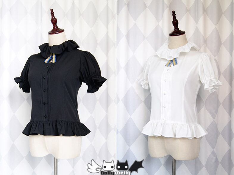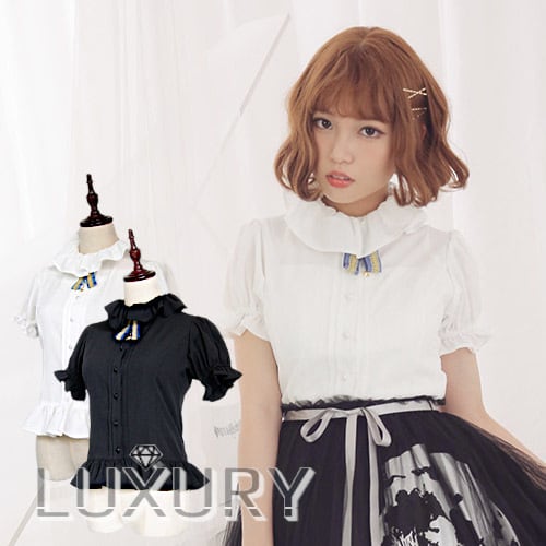 ロリータファッション/ロリータ/レディース/ブラウス/シャツ/半袖/モノトーン/ゴスロリ/甘ロリ/春夏/夏物/フリル/リボン/タイ/リボンタイ/カジュアル/kawaii/かわいい