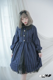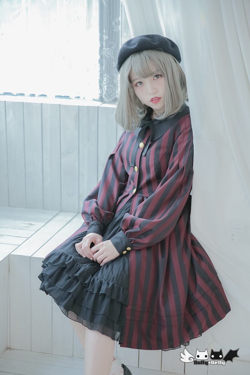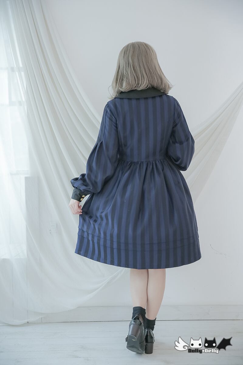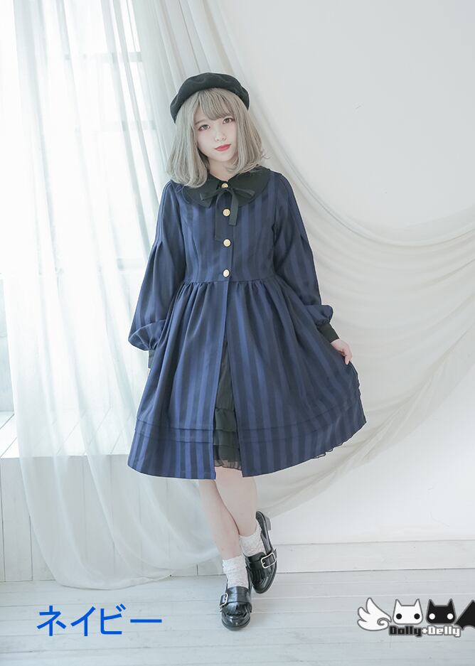Dolly Delly ロリータ クラシカルコート 春秋 ストライプ リボン 長袖 パフスリーブ クラロリ 襟付き 学生風 loli1235