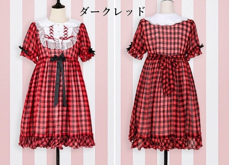 【現品限り】ロリータ グレーLのみ ギンガムチェック スイート 半袖ワンピース リボン 甘ロリ