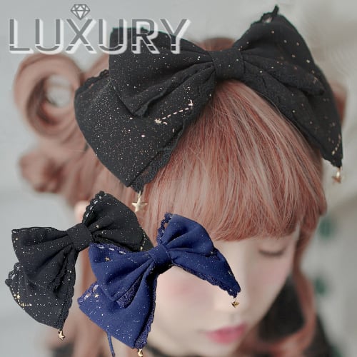 ロリータ 星がいっぱい ロマンチック リボンカチューシャ レース 星座 甘ロリ クラシカル ブチャーム 夜空