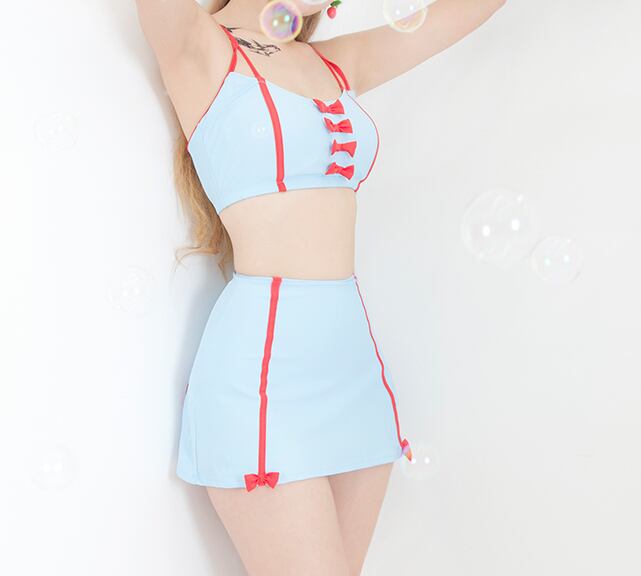 ロリータファッション/ロリータ/レディース/スイムウェア/水着/ロリータ水着/リボン/セパレートタイプ/スカートタイプ/セクシー/3ピース/スイムキャップ付き/あまあま/スイート/甘ロリ/kawaii/かわいい/夏休み/プール/リゾート/海