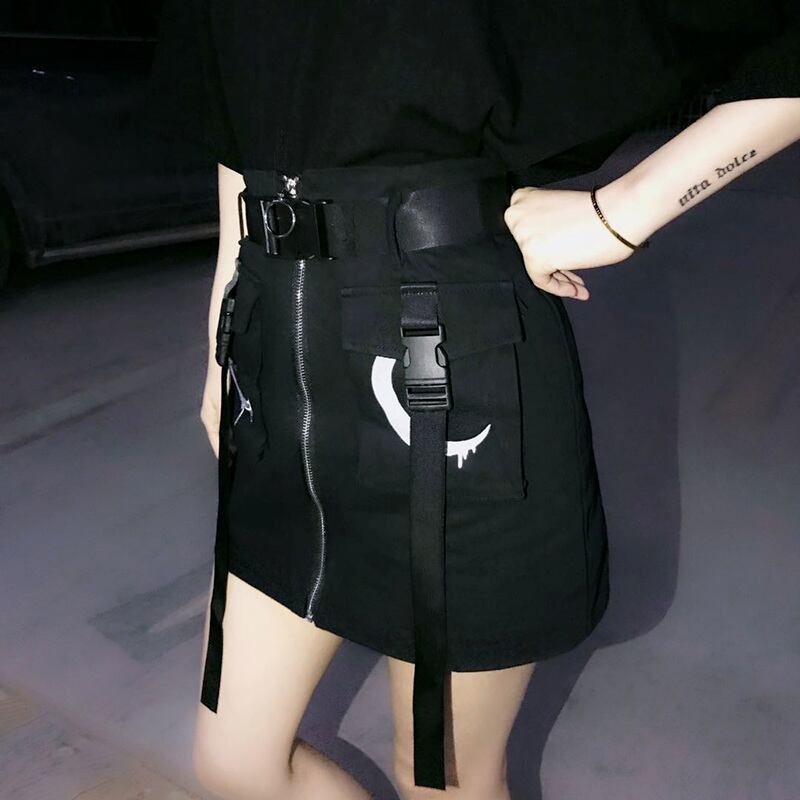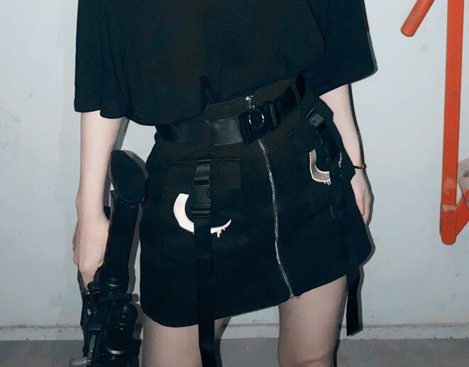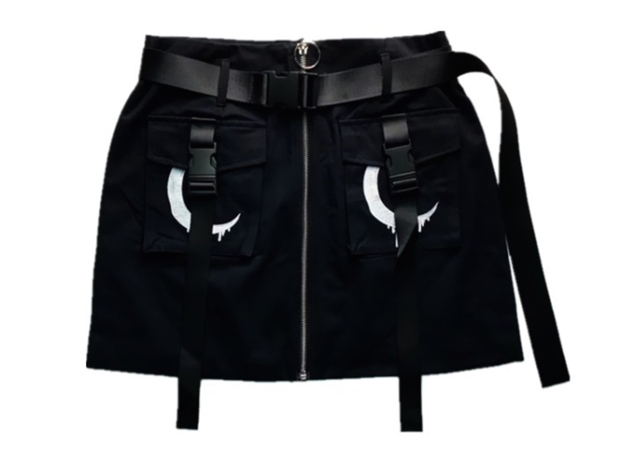 ロリータファッション/ロリータ/レディース/カジュアルロリータ/ゴシックカジュアル/スカート/ボトムス/ミニスカート/タイトスカート/フロントファスナー/ハイウエスト/ベルト/セクシー/クール/ゴスロリ/夏物