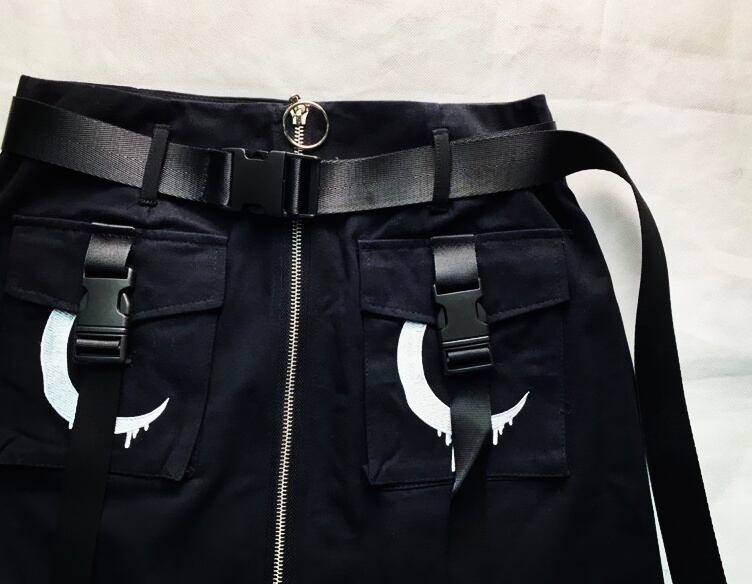 ゴスロリ ブラックタイトスカート ミニ丈 ベルト フロントファスナー ハード カジュアル クール 夏物 ボトムス スカート loli1364