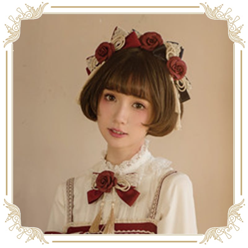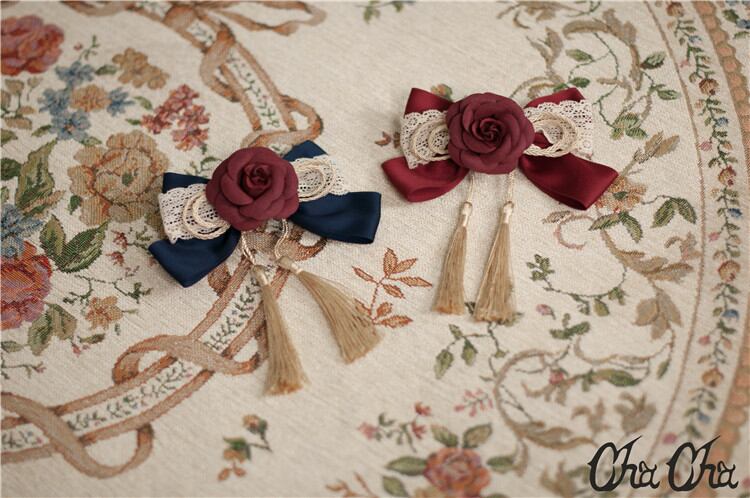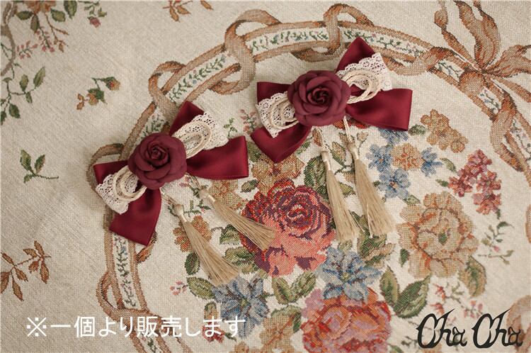 ロリータファッション NyaNya 和風 サイドリボン 薔薇コサージュ 1個販売 クリップ付き ヘッドアクセサリー 和ロリ アクセサリー loli1492
