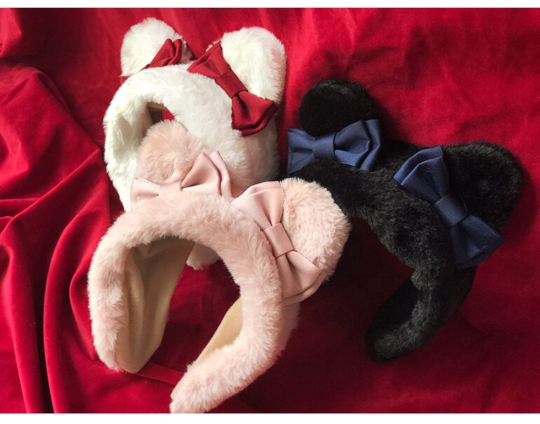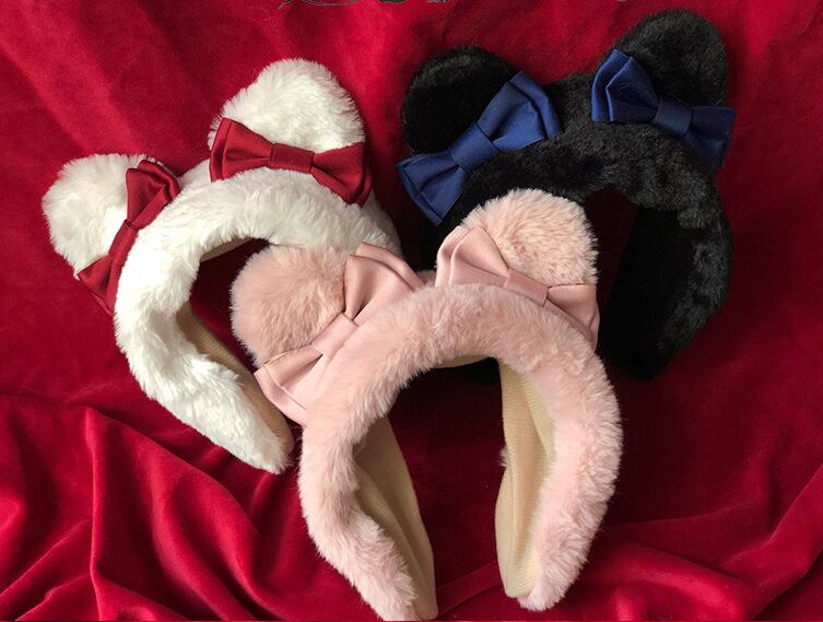 ロリータ クマ耳モコモコカチューシャ 幅広め カチューシャ ヘッドドレス 甘ロリ コスプレ メイド 秋冬 リボン loli1821