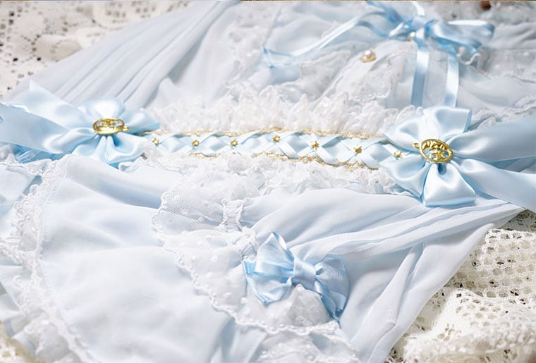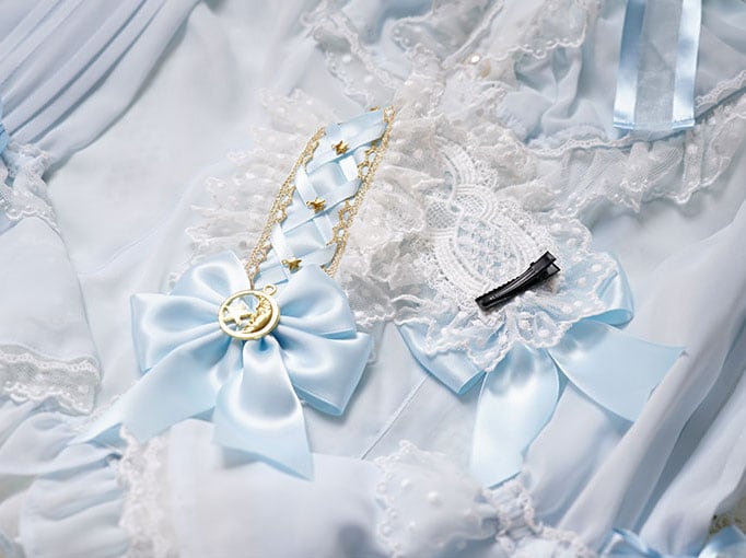 ロリータ 三日月と星 ヘッドドレス サックスブルー ヘアアクセサリー 姫ロリ レース リボン 甘ロリ かわいい ロリータ小物 loli1837