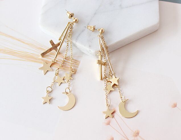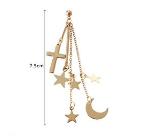 ロリータ 星月のピアス ロング 揺れる系 アクセサリー 一対 十字架 星 月 キラキラ かわいい ゴスロリ 甘ロリ loli1845