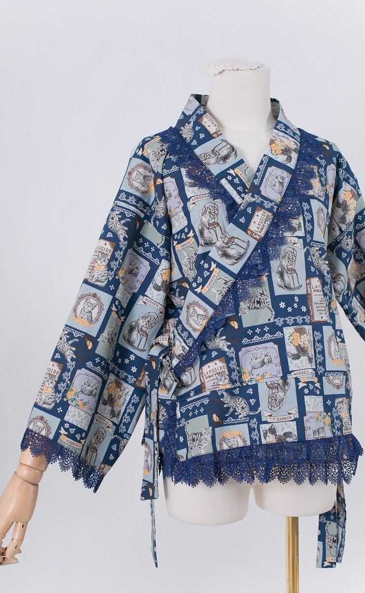 ロリータ/ブラウス/着物/和ロリ/ネコちゃん/ブルー/レッド/レース/リボン/可愛い/ポップ/SweetDreamer
