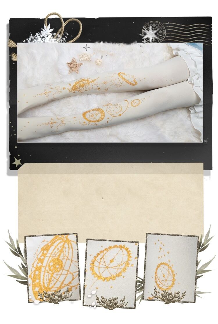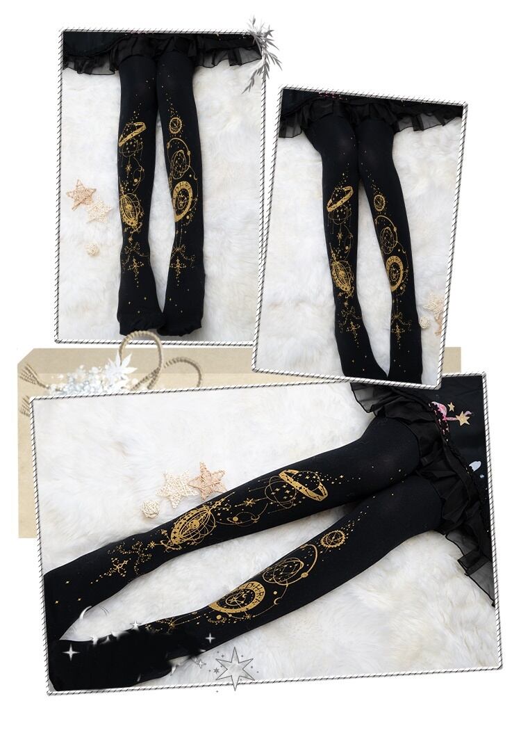 ロリータ/タイツ/厚手/宇宙/ブラック/ゴールド/ホワイト/ネイビー/惑星/星/120デニール/秋冬/あったか/防寒/可愛い