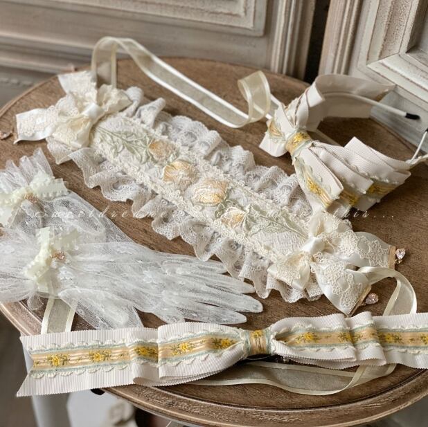 【受注生産】ロリータ SweetDreamerVintage エレガントレース ホワイト 手袋 リボン シースルー 上品