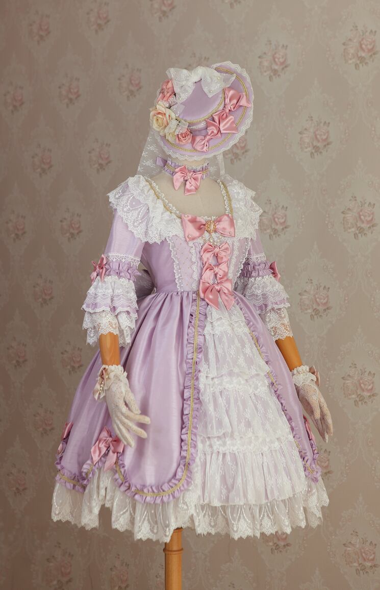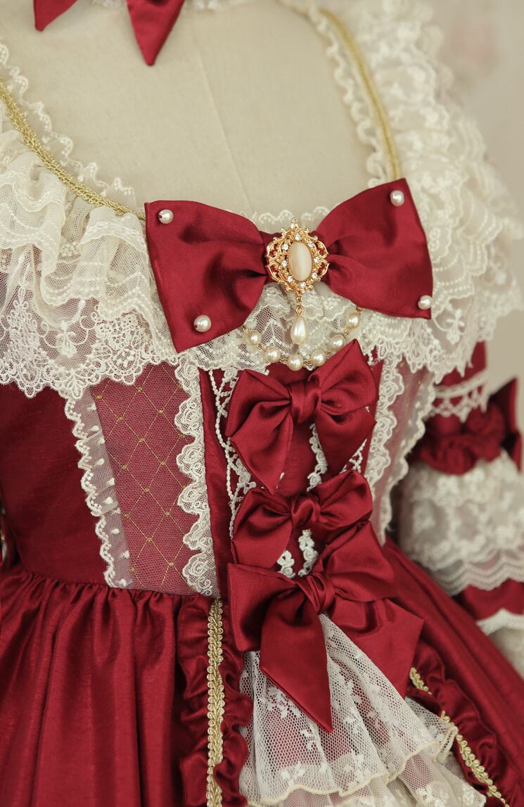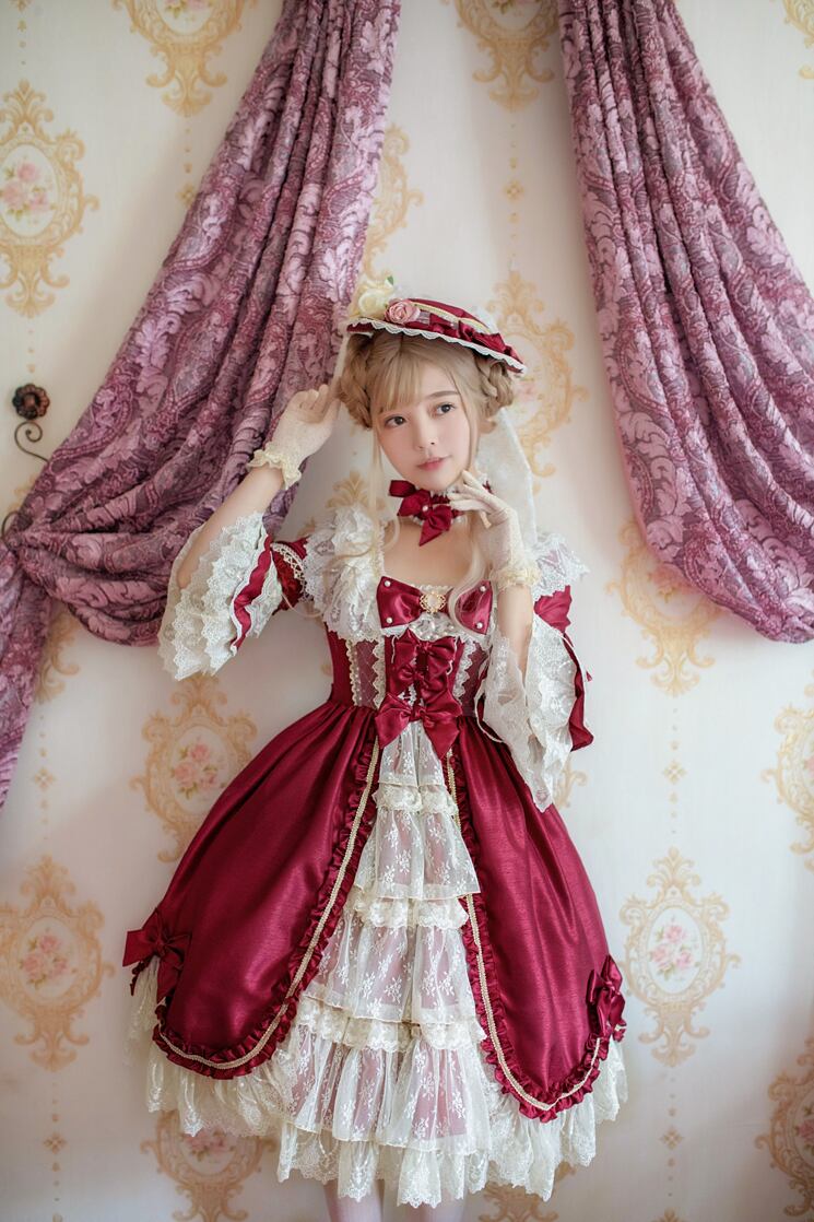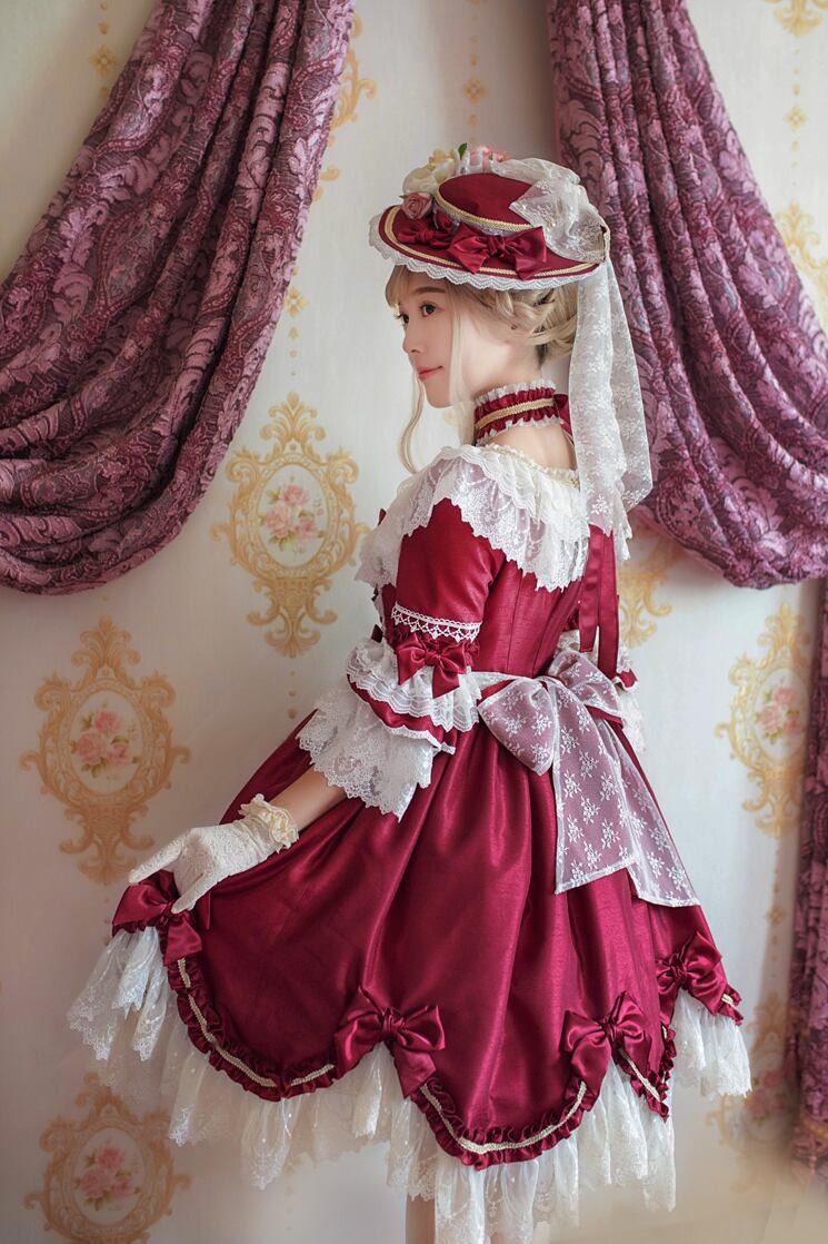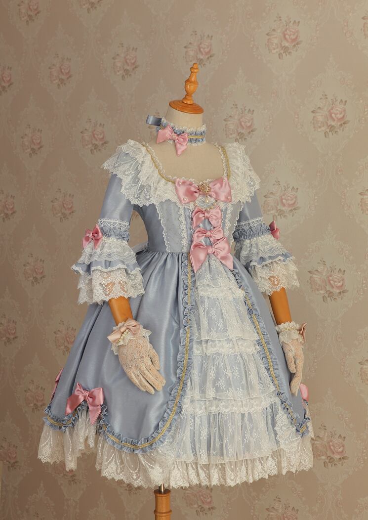 ロリータ/ワンピース/5分袖/ドレス/フリル/中世/ロココ/マリーアントワネット/ワインレッド/ブルー/パープル/可愛い/クラシカル/甘ロリ/リボン