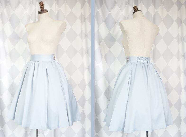ロリータ/スカート/パステルカラー/春/膝丈/Aライン/フレア/ゴム/可愛い/DollyDelly/ピンク/ブルー/新作/甘ロリ/カジュアル