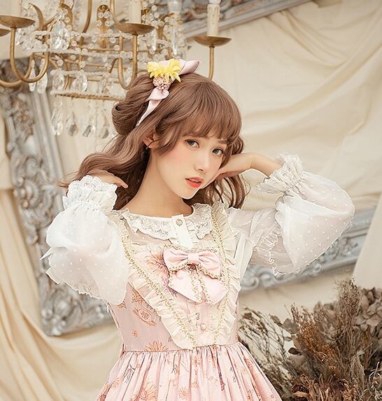ロリータ/ヘッドドレス/クリップ/リボン/フラワー/ピンク/黄色/お花/サイドクリップ/甘ロリ/可愛い/レース