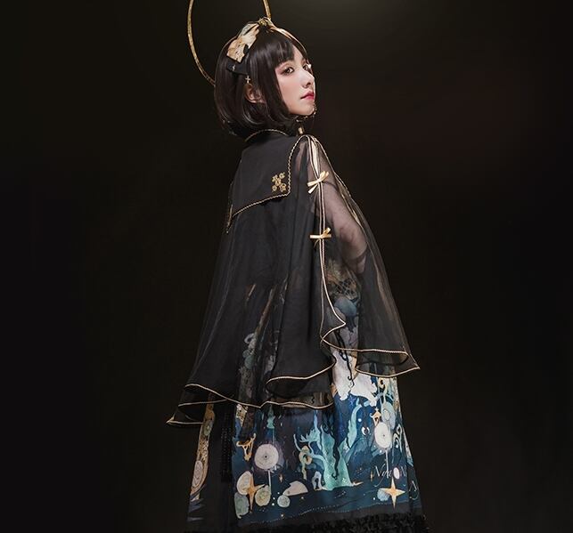 【納期40日】NyaNya フリルネック 皇子 マント シフォン 星 襟 ホワイト ブラック loli129005